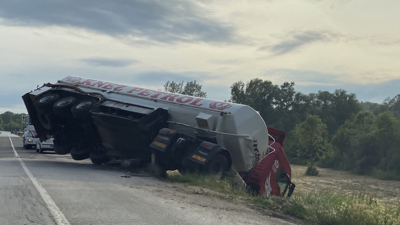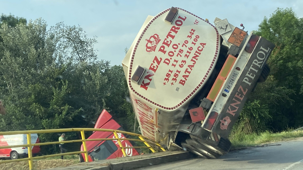 Kako nam je potvđeno, nema povređenih, a nije ni došlo do curenja goriva iz prikolice.