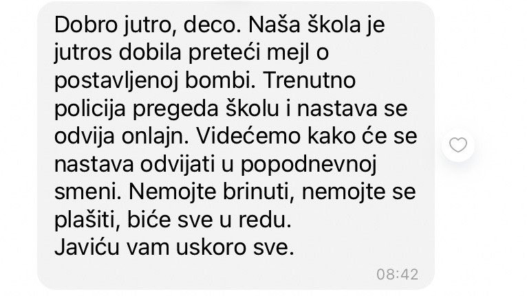 Nastavnici i učitelji su obavestili đake i nastavni kadar o dojavi o bombi putem poruka i objavama na svojim facebook stranicama.