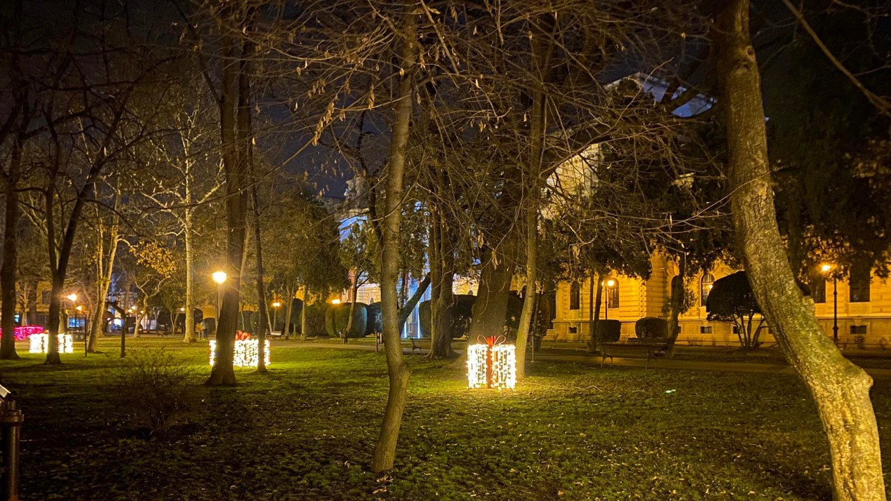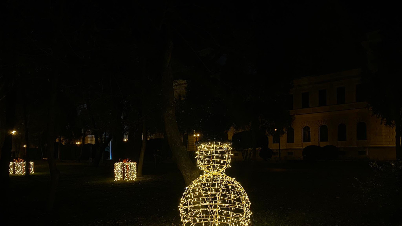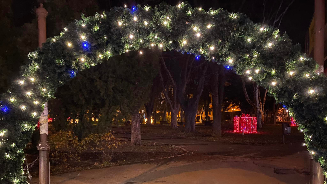 U centru grada je okićena jelka prošlogodišnjim ukrasima.