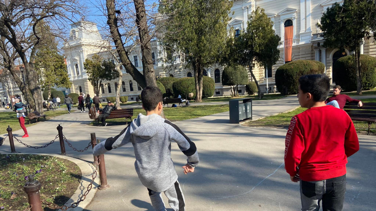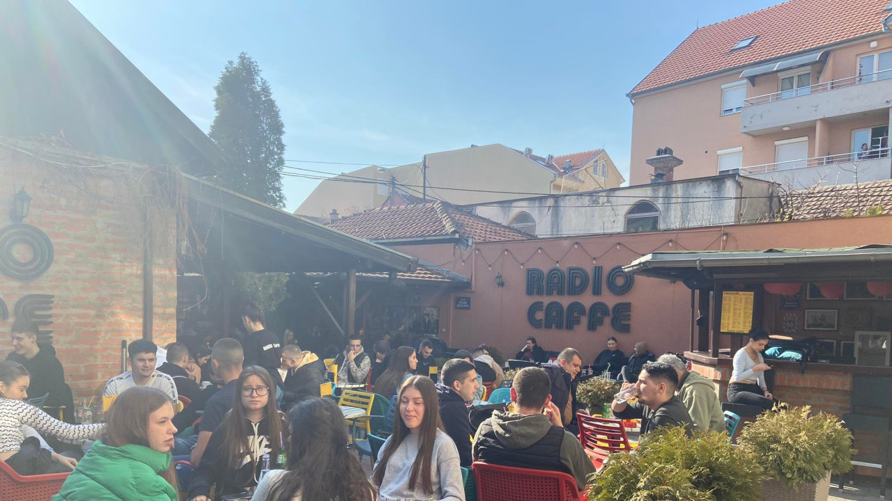 Danas je u gradu Požarevcu topao i sunčan dan. U ovom trenutku park je pun dece koja se druže na otvorenom, dok se njihovi roditelji opuštaju u suncu i svežem vazduhu. U Radio-caffeu je bašta puna ljudi koji uživaju u kafi i razgovoru sa prijateljima. Uz zvuke muzike i miris kafe ovo je idealno mesto za opuštanje u lepom vremenu.