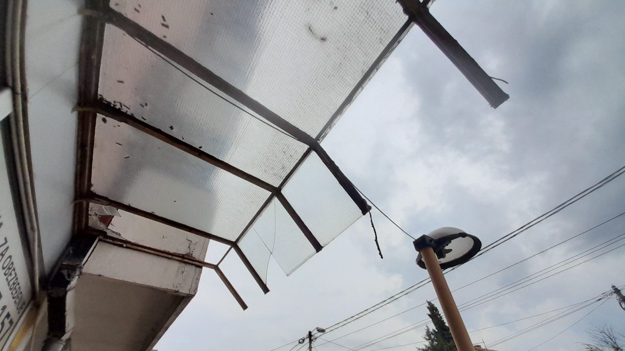 Naprsla staklena nadstrešnica predstavlja opasnost za prolaznike