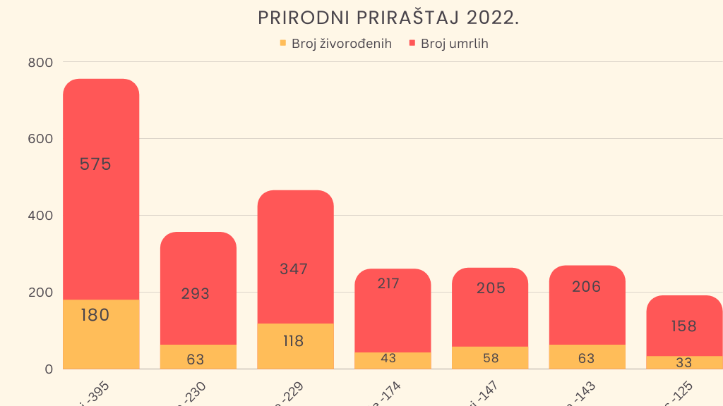 Navedene vrednosti su rezultat kumuliranih negativnih demografskih efekata tokom dužeg perioda. Od 2013. do 2022. godine, broj stanovnika u Republici Srbiji je, samo na osnovu prirodnog priraštaja, smanjen za 433 323, navodi RSZ.