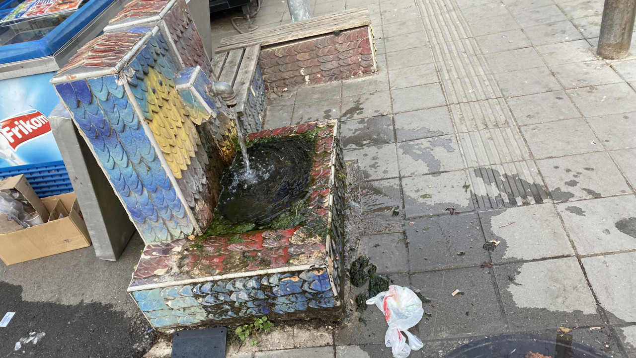 Odvod javne česme kod pijace „Krug“ se zapušio, a voda koja iz česme teče, preliva se na trotoar.