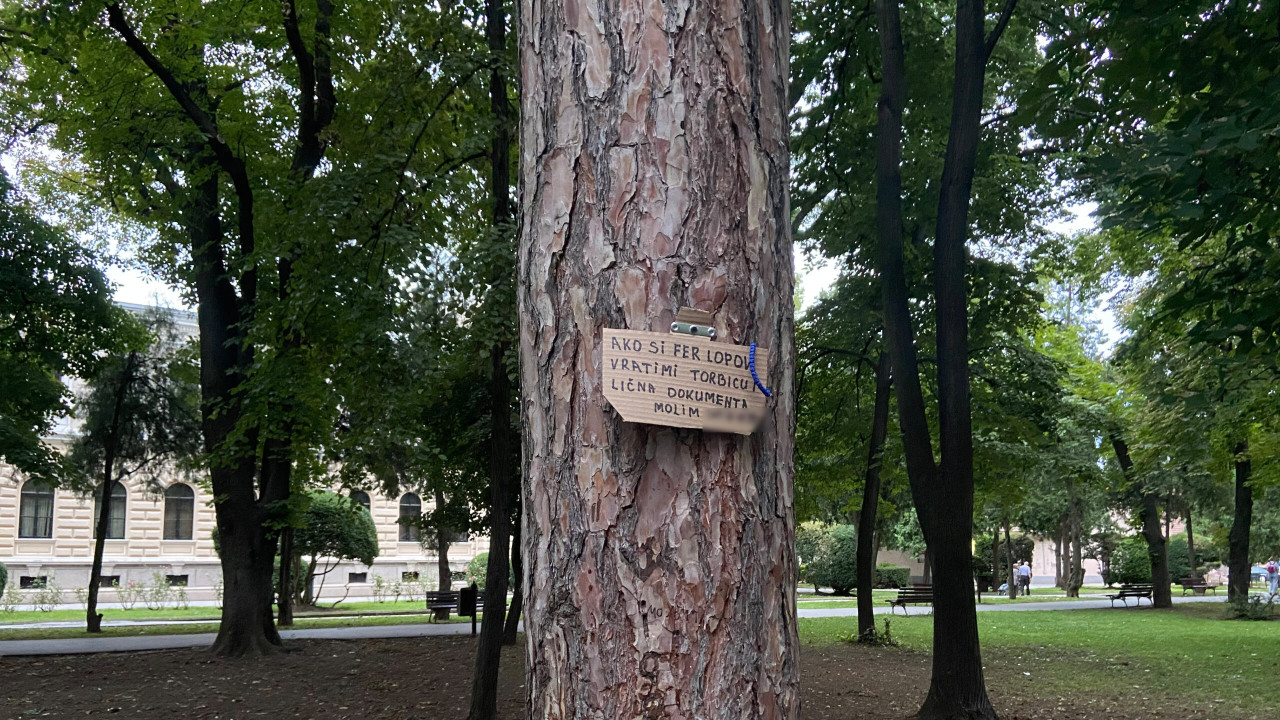 Jedan od sugrađana primetio je neobičnu poruku u Gradskom parku. Osoba kojoj su ukradena torba i lična dokumenta ostavila je broj telefona i pozvala počinioca da ih joj vrati.