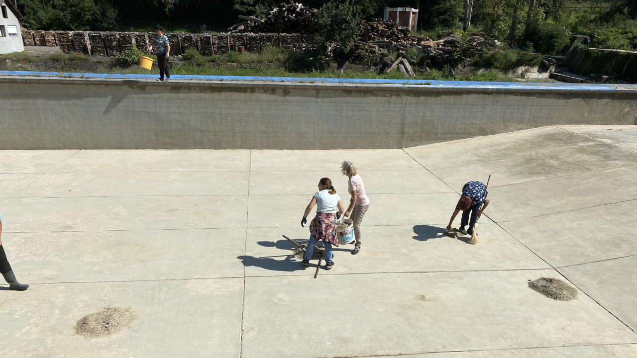 U selu Dobra koje je na konkursu opštine Golubac i Organizacije Helvetas dobilo sredstva za uređenje bazena, trenutno se radi na čišćenju istog.