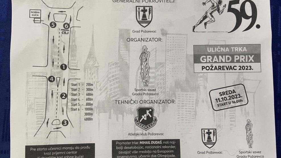 „Ove trke imaće međunarodni karakter, imaćemo takmičare iz drugih država iz regiona, pre svega. Pokrovitelj trka će biti Mihail Dudaš naš proslavljeni desetobojac, nacionalni rekorder, olimpijac, osvajač više medalja na Evropskim prvenstvima, tako da ću iskoristiti priliku da pozovem sve sugrađane, sve ljubitelje atletike, da dođu da prisustvuju trkama i sve zainteresovane da se prijave i uzmu učešće u trkama koje su pred nama”, rekao je Milan Jović član gradskog veća Požarevac zadužen za sport