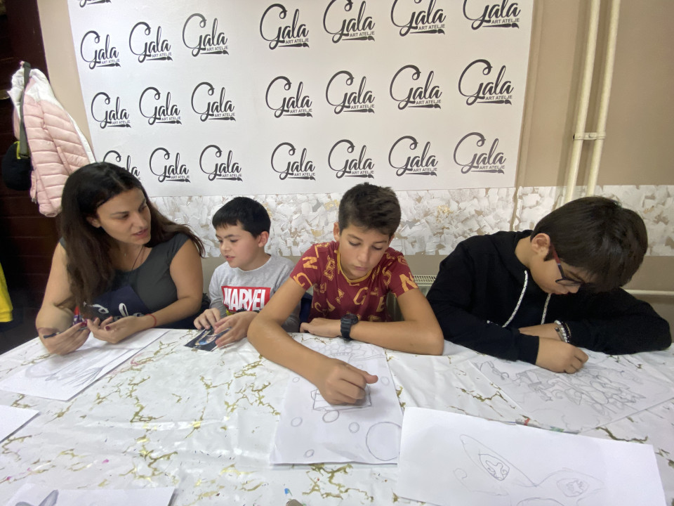 “Bitno je da vole to što rade i bitno je da su srećni kad su ovde”, kaže Sanja Berišić iz Gala art ateljea u Požarevcu koja svake subote od 10 do 12h radi sa decom i uči ih crtanju i slikanju.