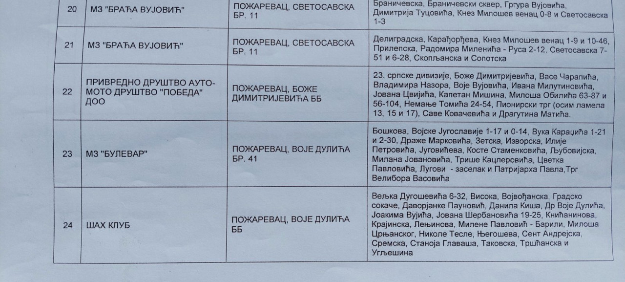 "U Ratarskoj ulici broj 2 u Požarevcu, nalaze se prostorije mesne zajednice „Burjan mala“. Na osnovu odluke Gradske izborne komisije u Požarevcu ovo je biračko mesto broj 27. Prema javno dostupnim podacima utvrdili smo da je na ovoj adresi upisano desetoro ljudi sa pravom glasa. To znači, da prema našem biračkom spisku imamo birače koji žive čak i na biračkim mestima.