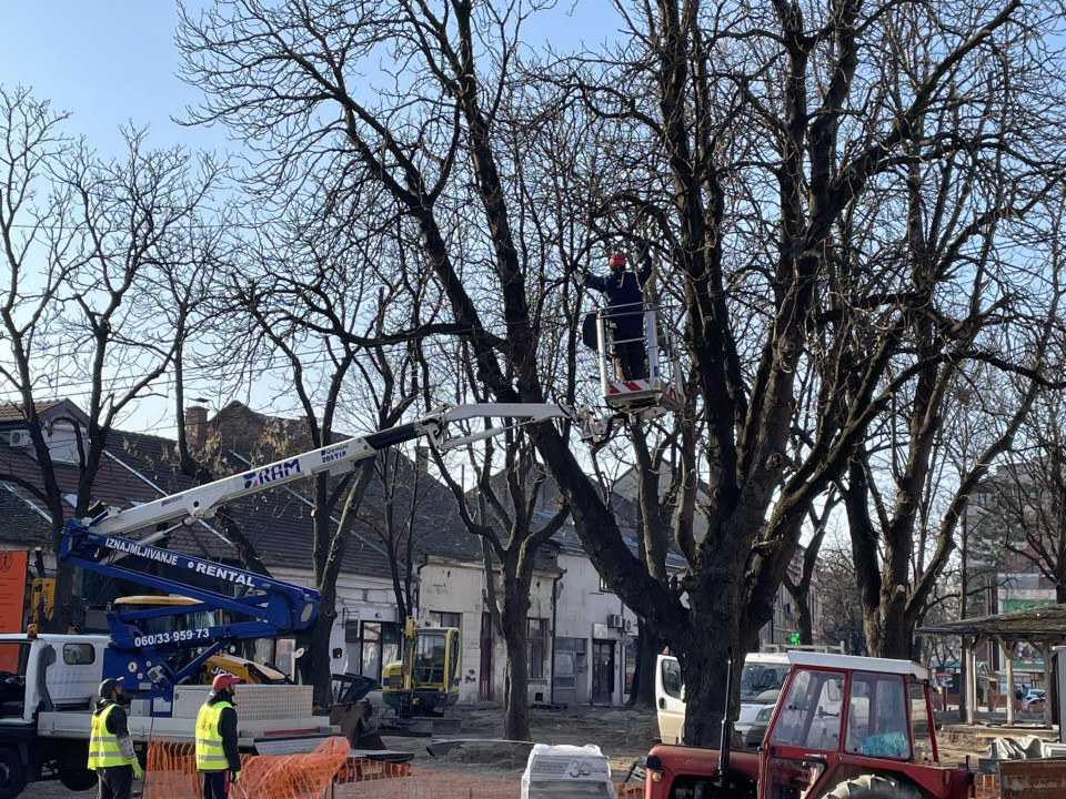 Na platou "Čikoš" radnici JKP "Komunalne službe" orezuju grane drveća.