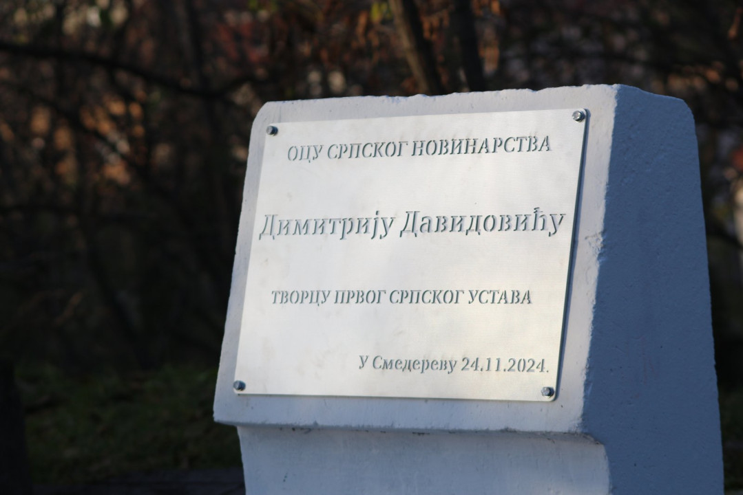 Posebnu pažnju učesnika privukla je obnova postamenta i vraćanje spomen-ploče posvećene Dimitriju Davidoviću, jednom od najvažnijih ličnosti srpske istorije. Profesor istorije Dušan Mitrović iz udruženja Kulturno nasleđe grada Smedereva održao je kratko predavanje o životu i delu ovog velikana, podsećajući okupljene na njegovu ulogu u pisanju Sretenjskog ustava i osnivanju Novina serbskih. Mitrović je istakao i da je park dobio ime Novinarski 1981. godine, povodom stogodišnjice osnivanja Udruženja novinara Srbije, ali da je poslednjih decenija bio zanemaren.