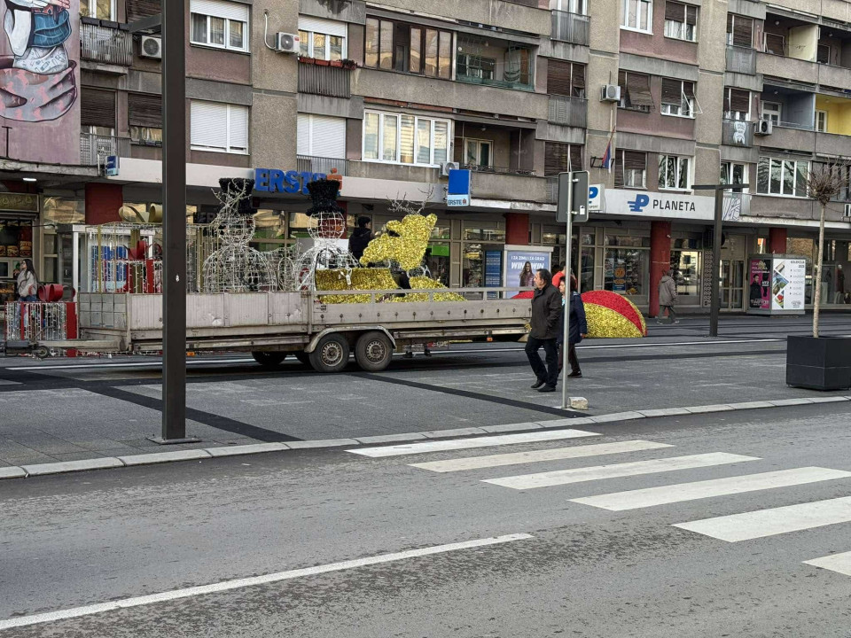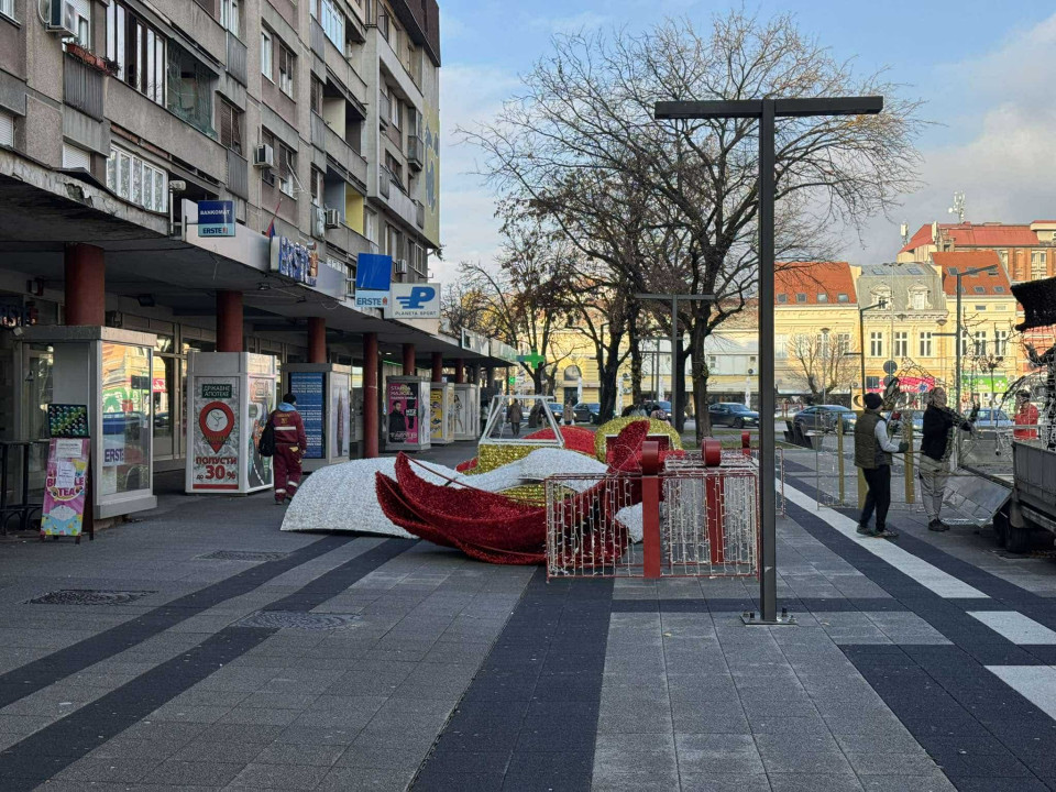Radnici trenutno postavljaju dekoraciju na platou u Tabačkoj čaršiji.