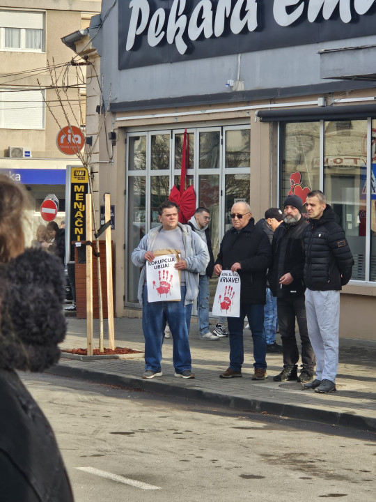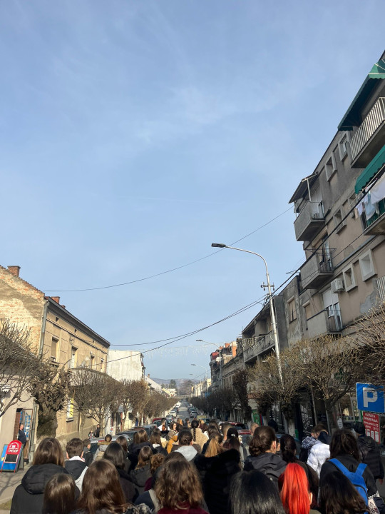 Tačno u 11:52 su na petnaest minuta izašli maturanti ove škole i u tišini stajali na ulici.
