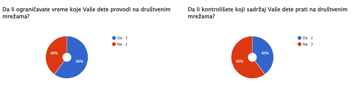 Među roditeljima koji su popunili anketu veći je broj onih koji ograničavaju vreme koje njihovo dete provodi na društvenim mrežama, ali je takođe i veći broj onih koji ne kontrolišu koji to sadržaj deca konzumiraju.