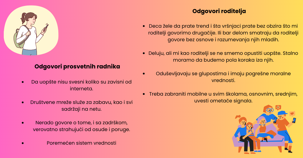 Prosvetni radnici su kroz anketu imali prilike da opišu šta bi, po njihovom mišljenju, bili najveći izazovi u vezi sa društvenim mrežama i obrazovanjem mladih. Ovo su njihovi odgovori: