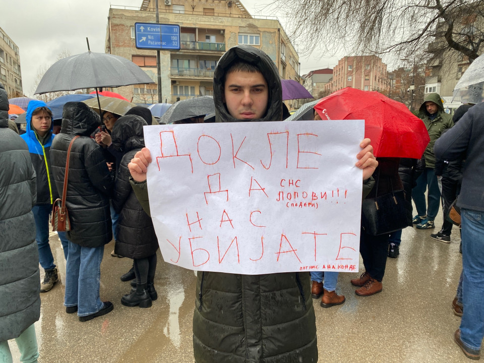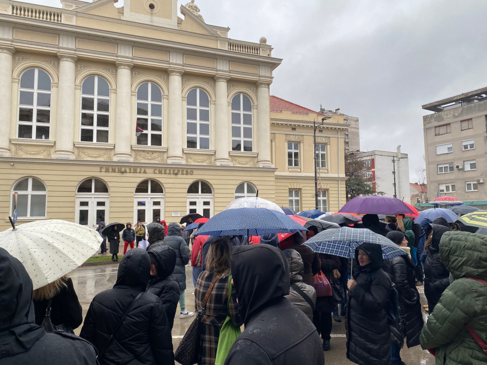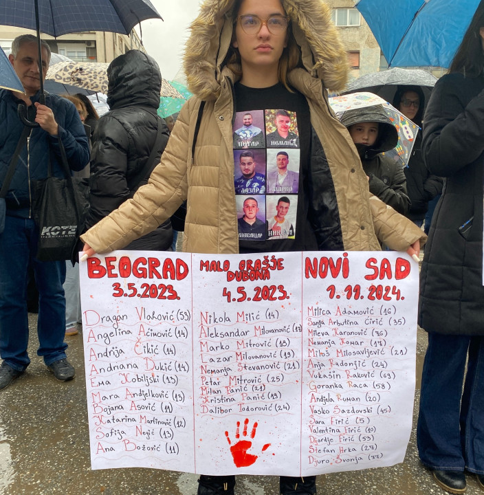 Đacima i profesorima pridružili su se i ostali građani, koji su na 15 minuta blokirali raskrsnicu ispred Gimnazije, odajući počast tragično stradalima u rušenju nadstrešnice u Novom Sadu.