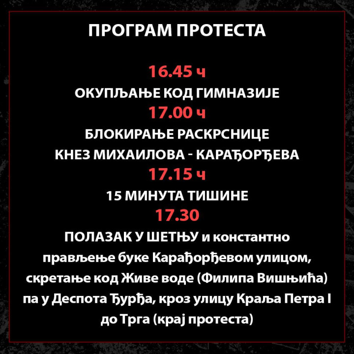 Prosvetni radnici su na kraju svog obraćanja još jednom pozvali građane da se pridruže protestu i podrže studente i svu decu u njihovoj borbi za pravdu i ostvarenje zahteva.