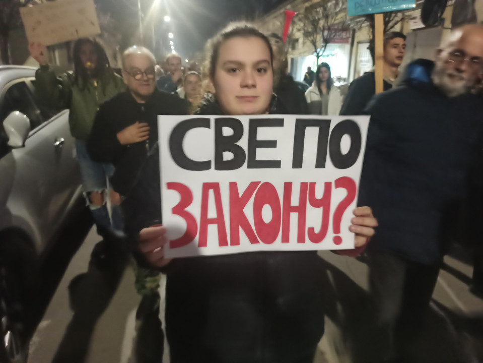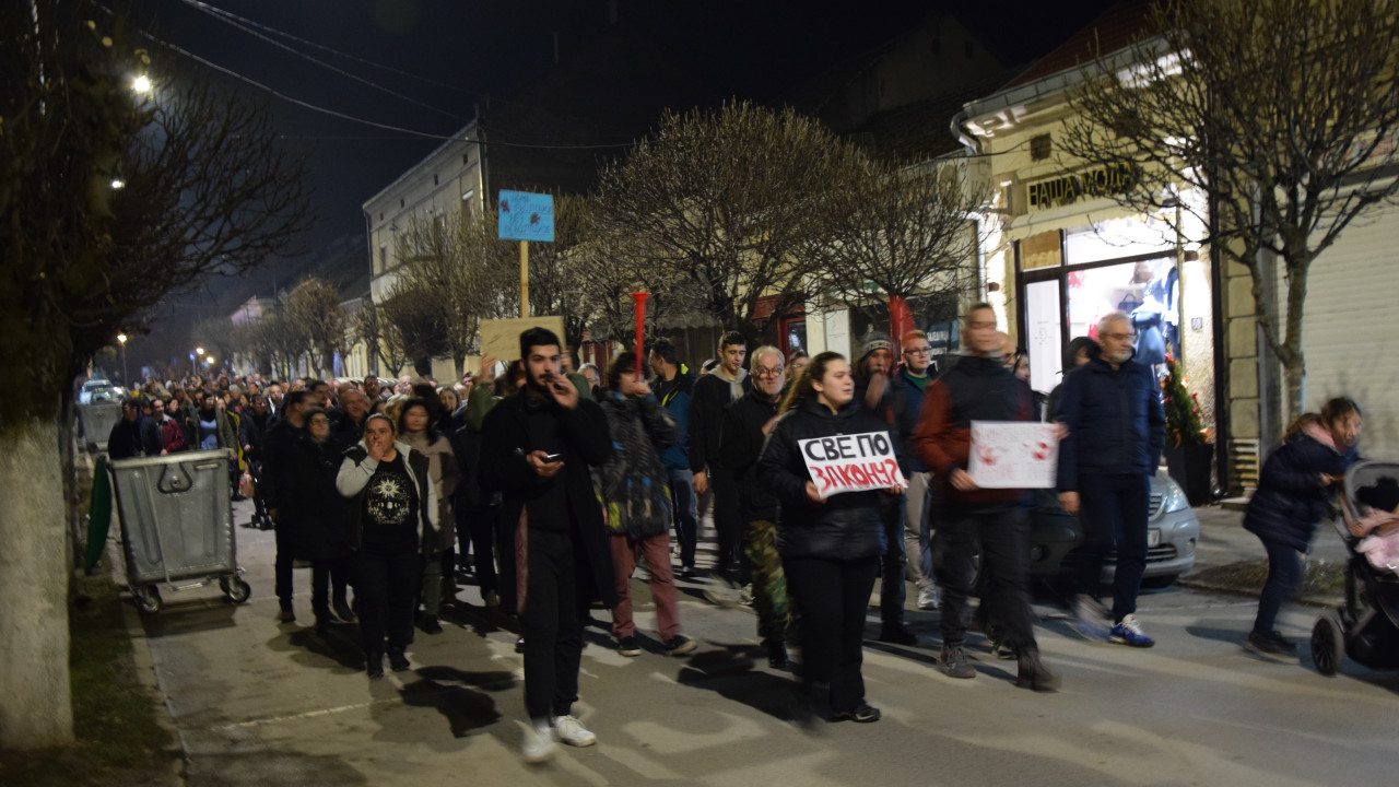 Protestu je prisustvovao približno isti broj ljudi kao i pre dva dana. Nakon okupljanja ispred škole, učesnici su petnaestominutnom tišinom odali poštu nastradalima u nesreći prouzrokovanoj padom nastrešnice u Novom Sadu, a potom su krenuli u protestnu šetnju od škole do pijace i nazad.