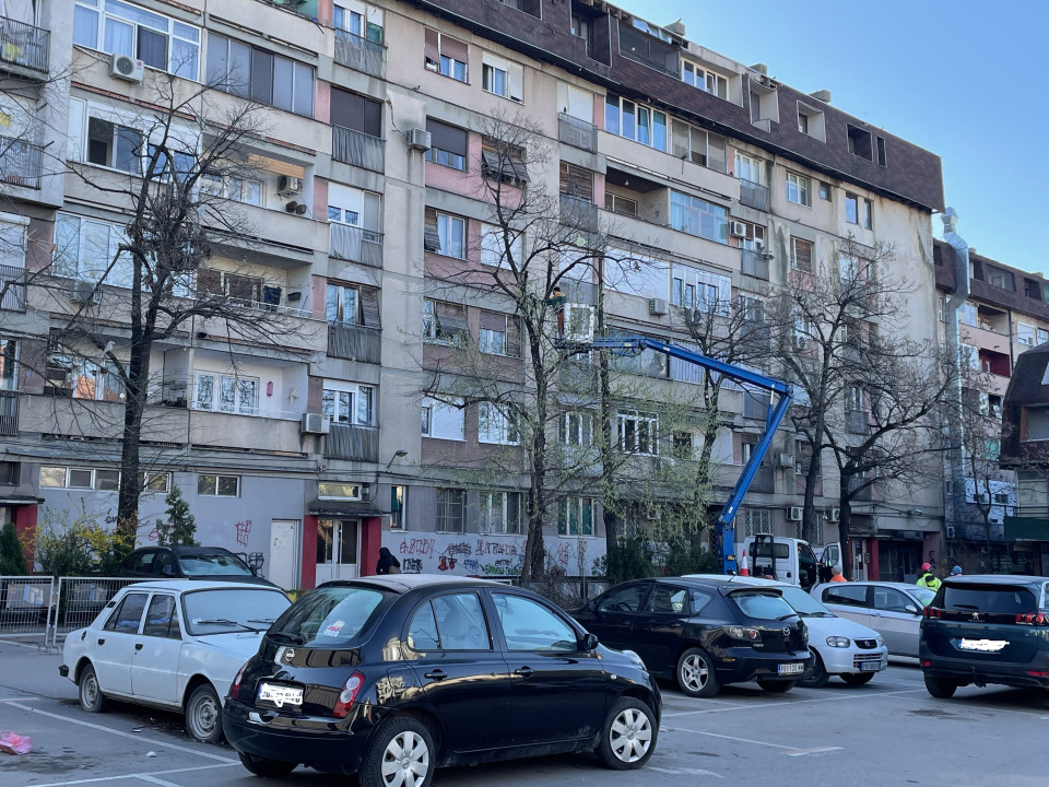 Radnici JKP "Komunalne službe" od jutros orezuju drveće na parkingu u Sinđelićevoj ulici.
