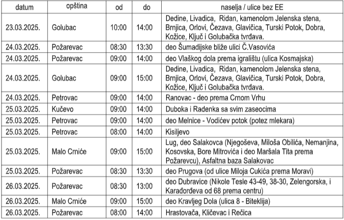 Ogranak Elektrodistribucija Požarevac izvodiće radove na redovnom održavanju ili rekonstrukciji distributivne elektroenergetske mreže i trafo-stanica radi unapređenja kvaliteta napajanja električnom energijom i seči rastinja u trasi dalekovoda ili niskonaponske mreže.