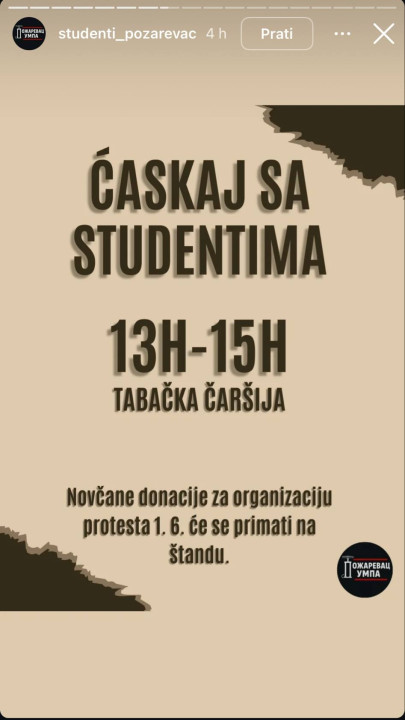 Studenti Požarevca za danas su najavili akciju "Ćaskaj sa studentima".