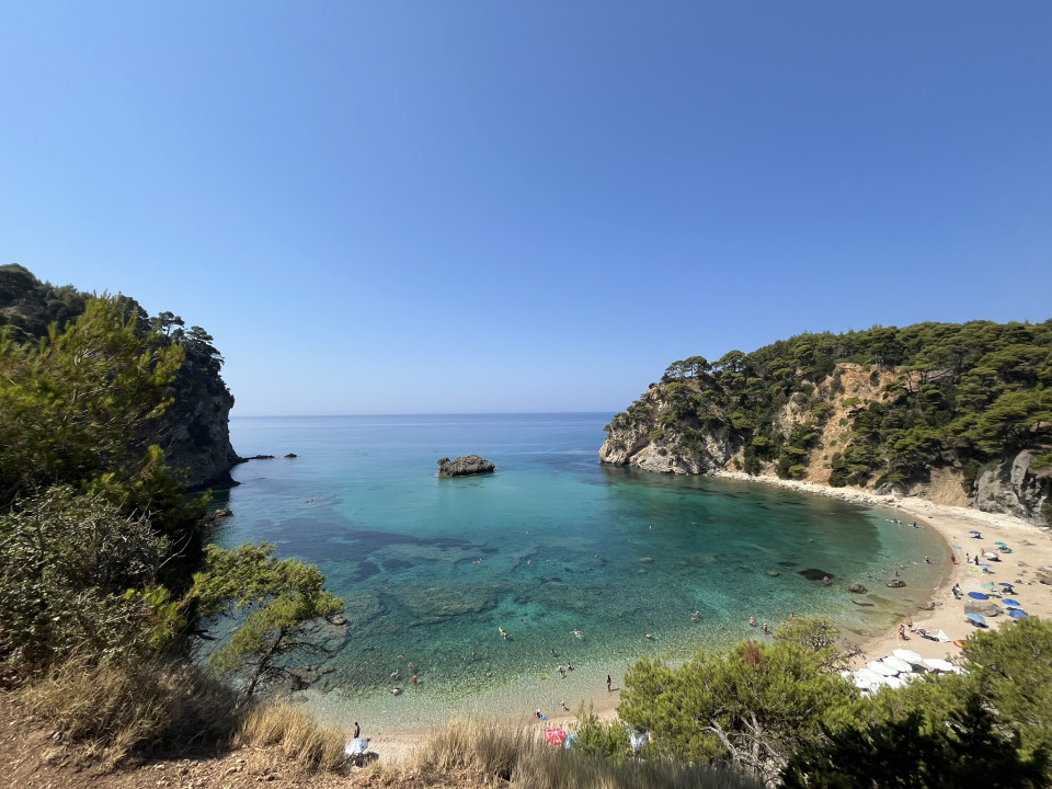Sarakiniko je plaža severno od Parge, do koje se može stići kolima ili čamcem. Uvala je okružena zelenim brdima, a voda je tirkizna i mirna. Plaža je šljunkovita, a okolina gotovo netaknuta. Fotografiju sam napravila sa stene iznad obale – pogled se pruža direktno na uvalu i otvoreno more.
