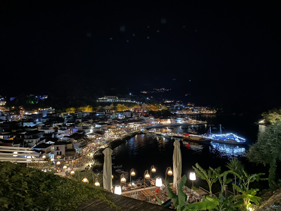 Noćnu fotografiju Parge napravila sam sa vidikovca ispred venecijanskog zamka, koji se nalazi iznad grada. Sa te visine vidi se cela luka i osvetljeno šetalište uz more. Svetla iz restorana, kafića i brodova blago se presijavaju po površini vode. Grad izgleda mirno, ali živo.