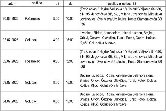 Ogranak Elektrodistribucija Požarevac izvodiće radove na redovnom održavanju ili rekonstrukciji distributivne elektroenergetske mreže i trafo stanica radi unapređenja kvaliteta napajanja električnom energijom i seči rastinja u trasi dalekovoda ili niskonaponske mreže.
