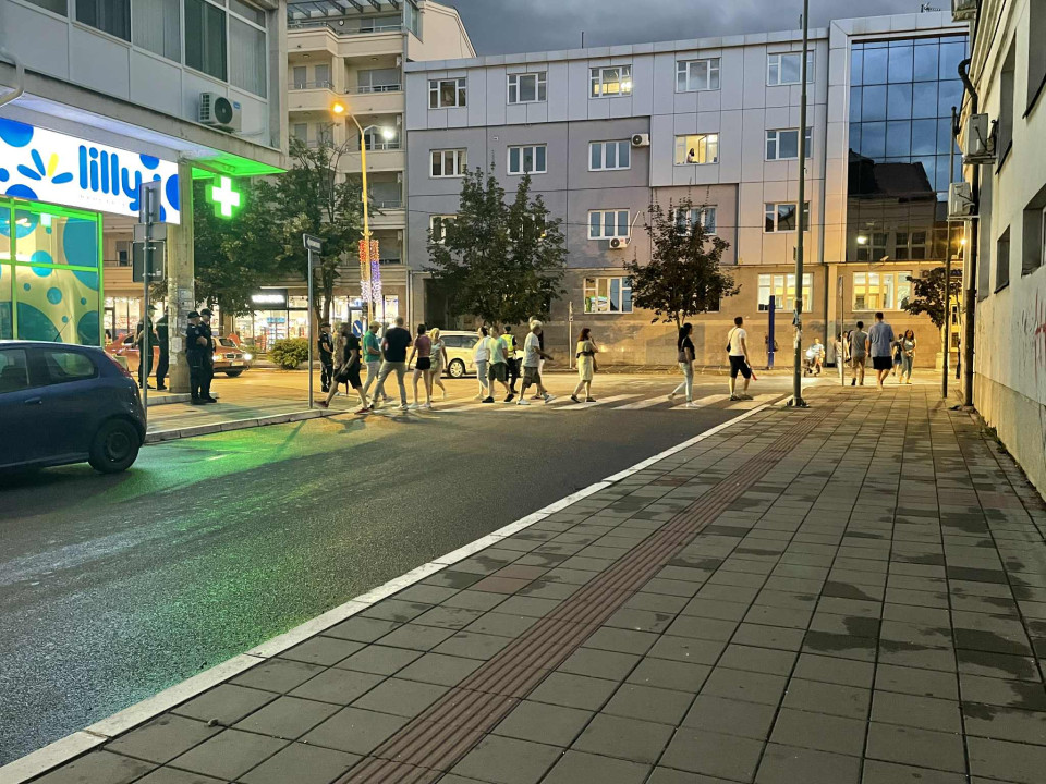 Blokiran je saobraćaj na pešačkim prelazima kod Medicinske škole u Ulici Lole Ribara i Sinđelićevoj ulici. Građani su šetali sa jednog na drugi pešački prelaz i naizmenično zaustavljali saobraćaj. Bila je prisutna policija koja je propuštala vozila naizmenično. U jednom trenutku je prošlo i vozilo Hitne pomoći koje se kretalo ka Sinđelićevoj ulici, te su građani zastali da ga propuste.