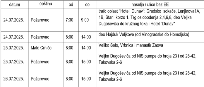 Zbog toga će bez električne energije biti korisnici na sledećim lokacijama: