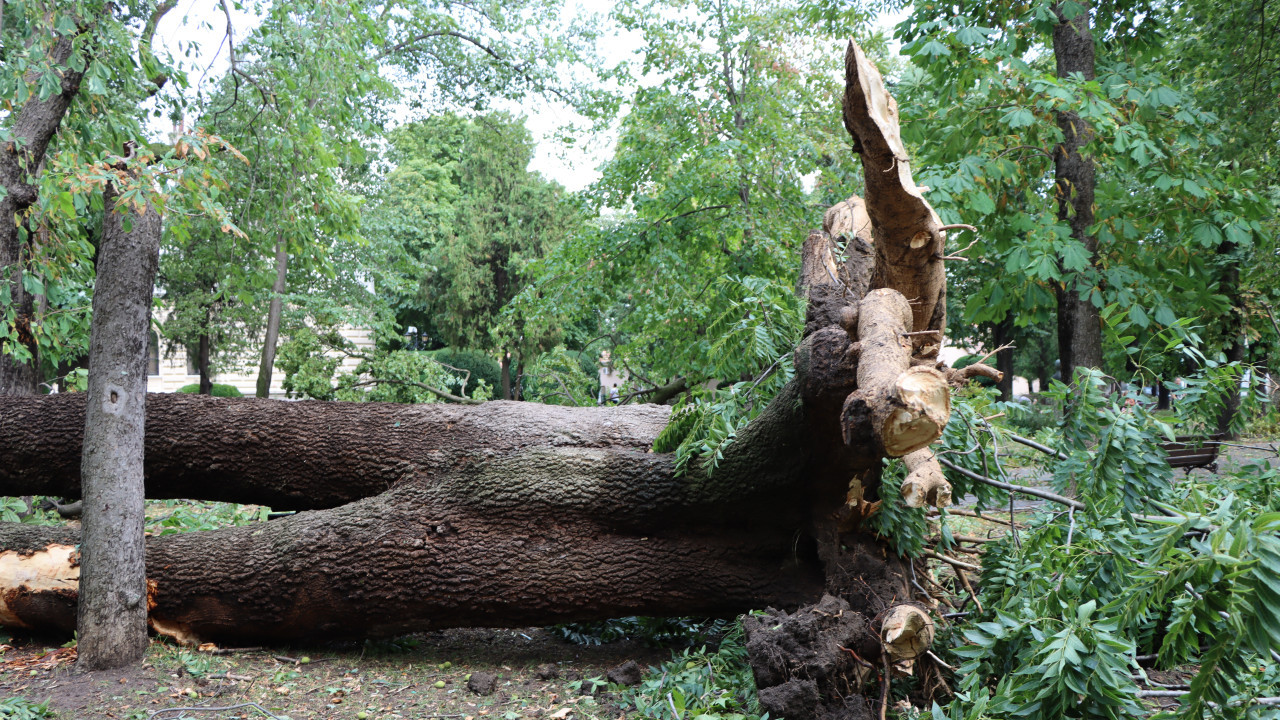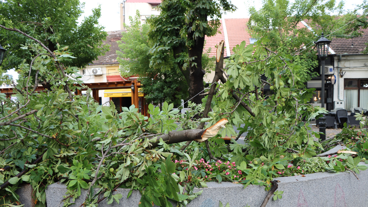 Boom 93 je obišao nekoliko lokacija u gradu na kojoj je nevreme počinilo veću štetu. Čikoš je jedva prohodan, polomljena su stabla i grane. Najviše je oštećen Gradski park. Olujni vetar polomio je drveće, a jedno stablo je iščupao iz korena.