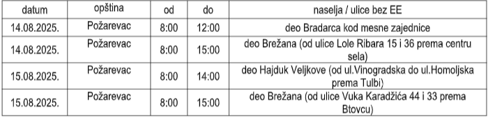 Planirana isključenja struje 14. i 15. avgusta