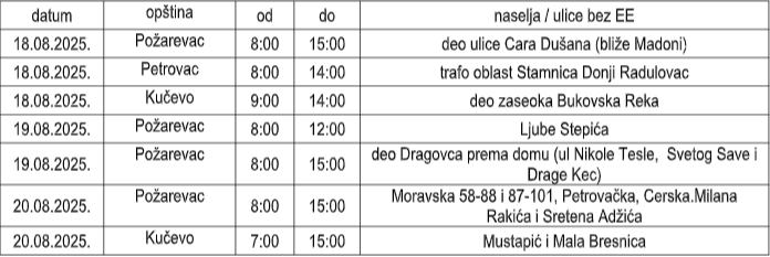 Ogranak Elektrodistribucija Požarevac izvodiće radove na redovnom održavanju ili rekonstrukciji distributivne elektroenergetske mreže i trafo stanica radi unapređenja kvaliteta napajanja električnom energijom i seči rastinja u trasi dalekovoda ili niskonaponske mreže.