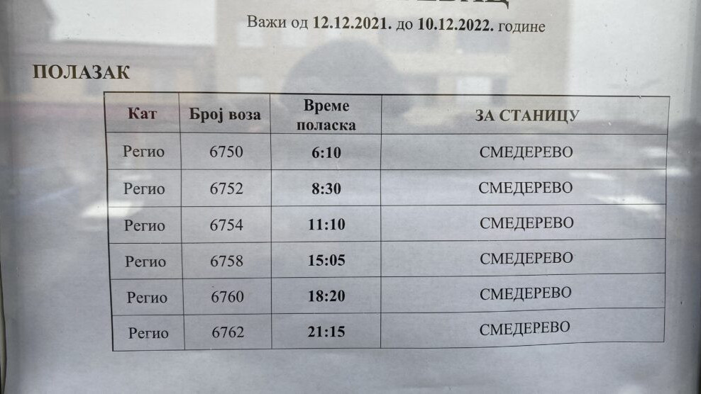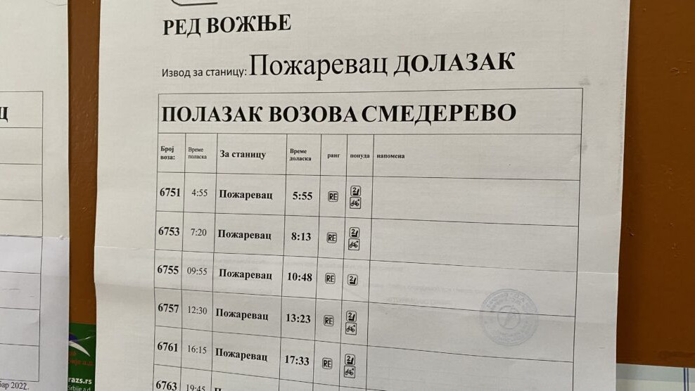 Prvi voz iz Smedereva koji će krenuti za Požarevac planiran je u 4:55, dok je poslednji u 19:45 časova.