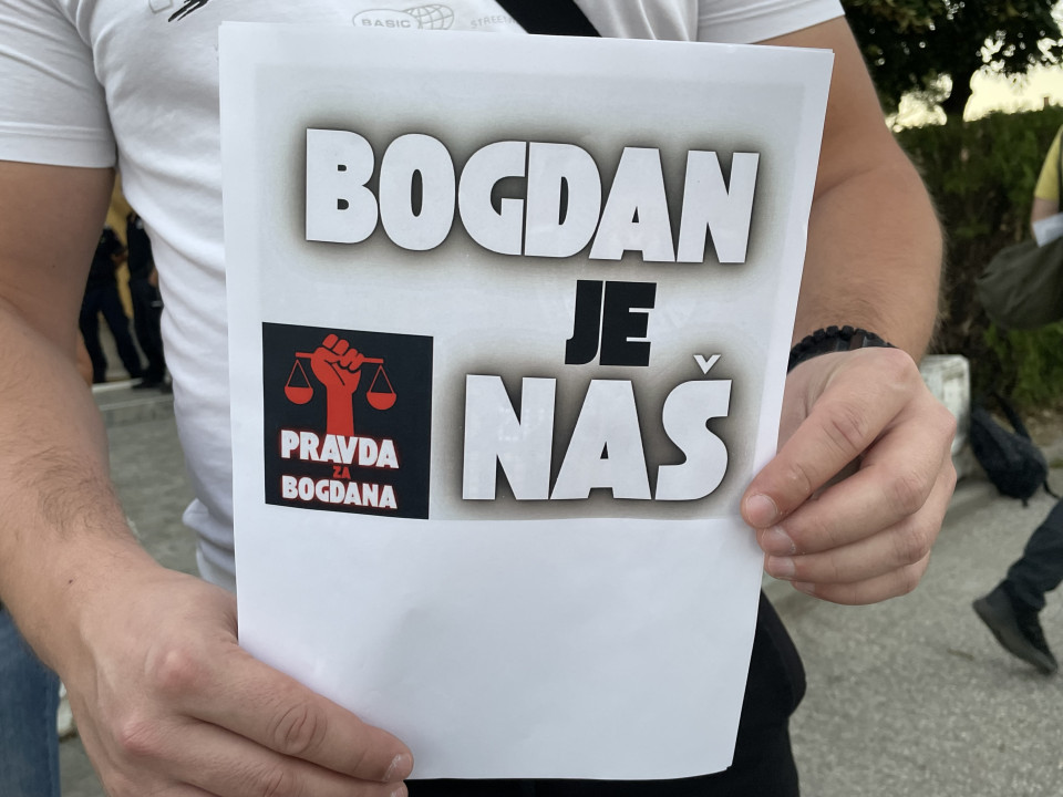 Okupljeni su nosili transparente sa porukama „Bogdan je naš", Pravda za Bogdana“.