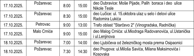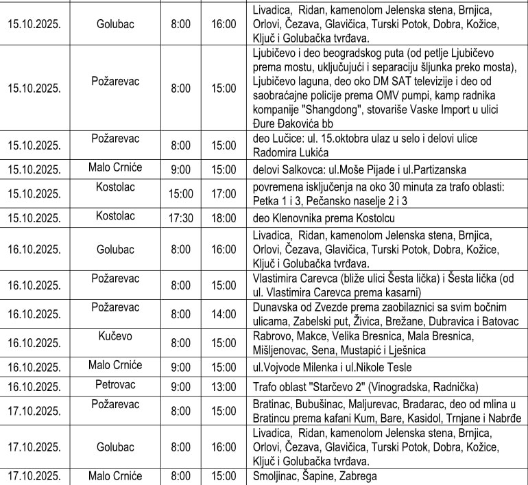 Veliki broj isključenja i tokom ove nedelje od 15. do 18. oktobra