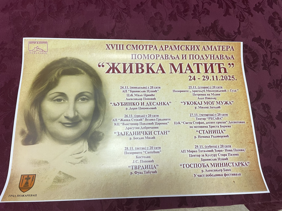 U Centru za kulturu Požarevac danas je na konferenciji za medije zvanično predstavljen program 18. Smotre dramskih amatera Pomoravlja i Podunavlja „Živka Matić”, koja će se održati od 24. do 29. novembra.