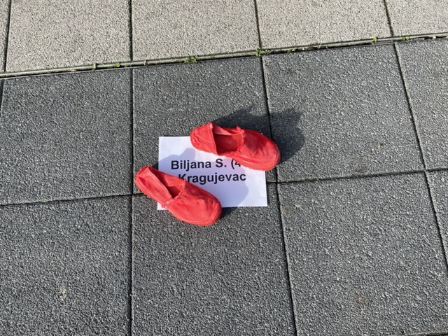 Koncept „Crvenih cipela“ nastao je kao međunarodni umetnički odgovor na tišinu oko fenomena femicida. Postavljanjem prazne obuće u javnom prostoru, uz imena onih koje su izgubile živote u 2025. godini, FemIn kolektiv podseća da iza svakog para cipela stoji žena čiji glas više nikada nećemo čuti. Istovremeno, ovo je podsećanje društvu i institucijama da femicid još uvek nije zakonski prepoznat u Srbiji.