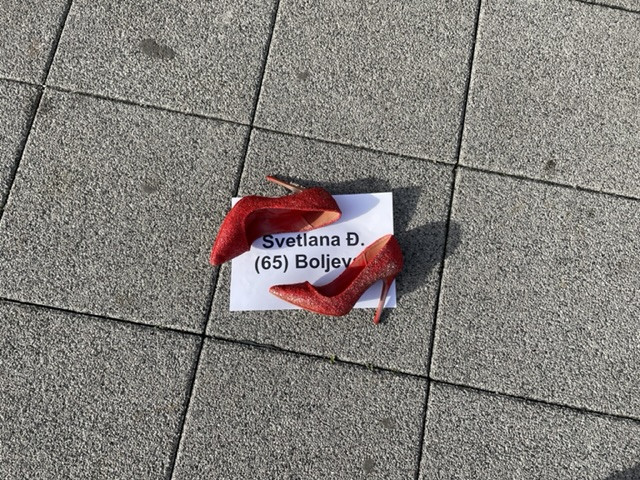 Prema rečima Marije Đorić iz Femin kolektiva, današnji performans predstavlja broj žena koje su od početka godine ubijene, a one su predstvaljene crvenim cipelama.