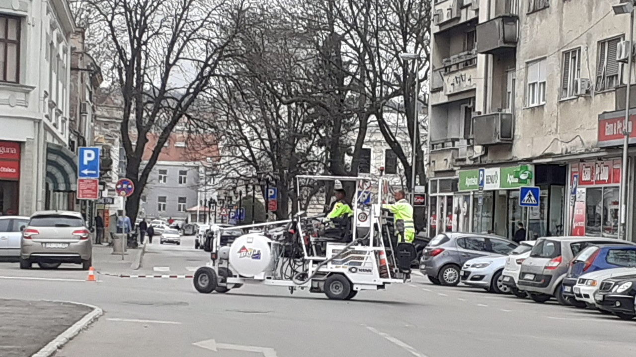 Centralne gradske ulice dobile su novi izgled, jer su radnici tokom prepodneva iscrtavali i osvežavali horizontalnu signalizaciju.