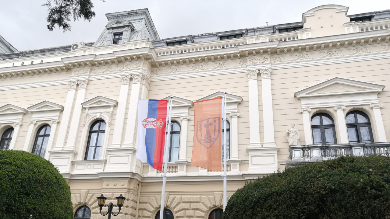 Ispred gradskog zdanja u Požarevcu danas su postavljeni novi jarboli sa zastavama.