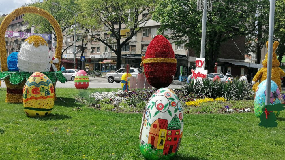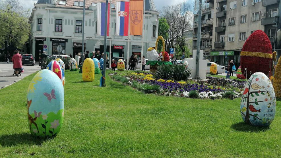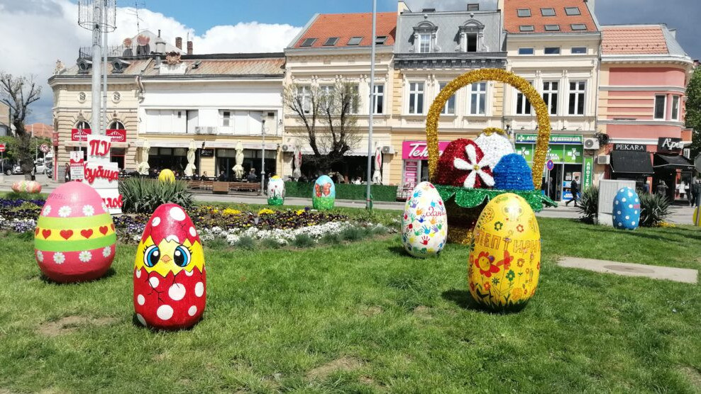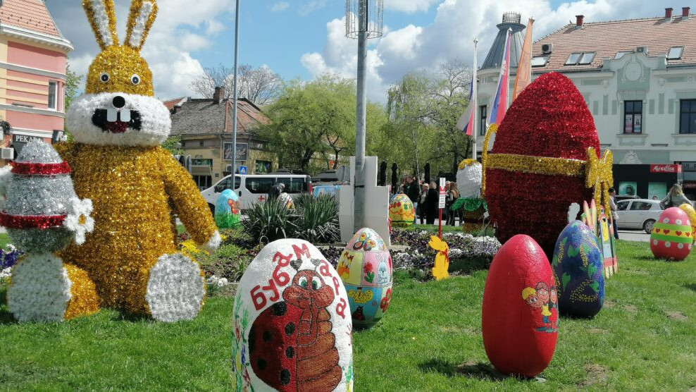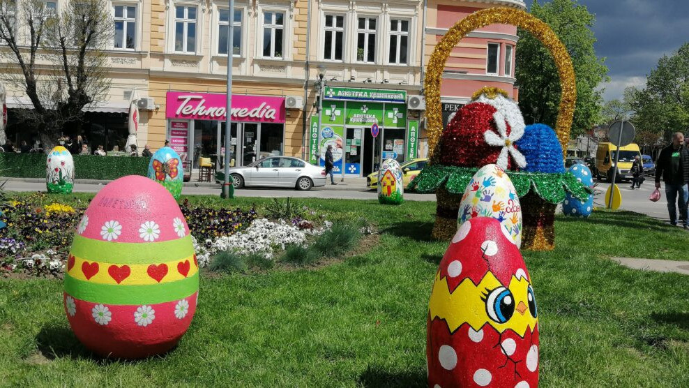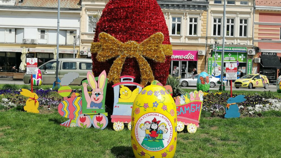 Mališani Predškolske ustanove „Ljubica Vrebalov“ svojim uskršnjim radovima dodatno su ulepšali centar grada.