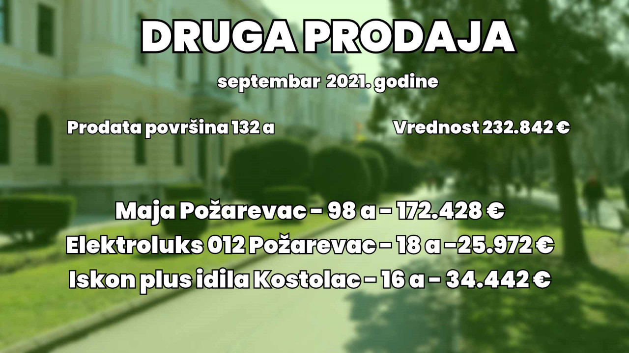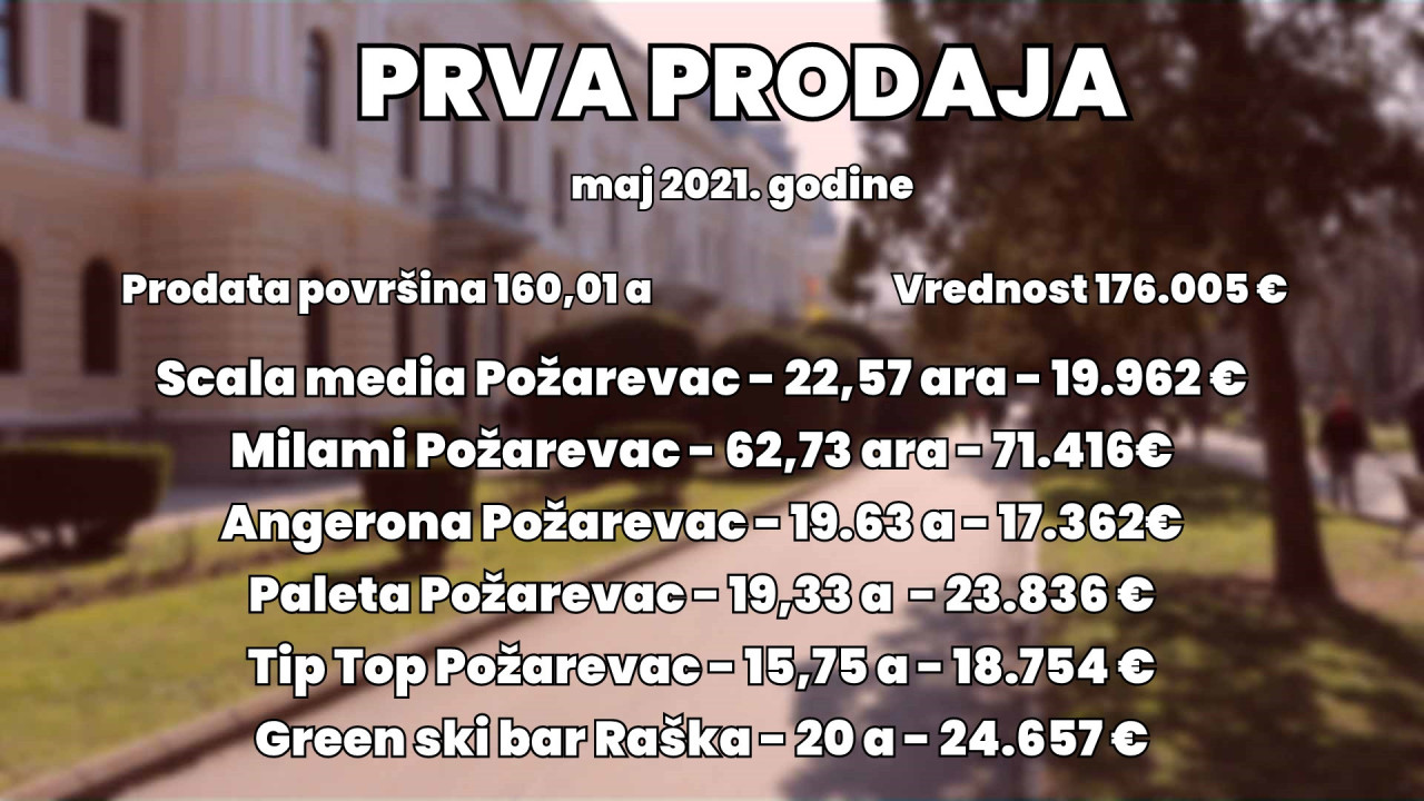Od prodaje navedenih parcela Grad Požarevac je do sada prihodovao približno 502.467 evra.